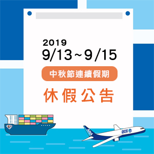 中秋節為中華民國法定假日,UCF華美航運全公司依法放假。