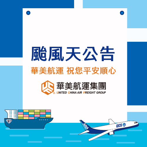 因瑪莉亞颱風造成以下地區停班停課 今日(7/11)無取件及派送服務:新北地區.桃園.新竹.苗栗.宜蘭 其他地區將維持正常營運。 台灣進口件清關、轉運及派送服務亦將延遲 不便之處,敬請見諒。