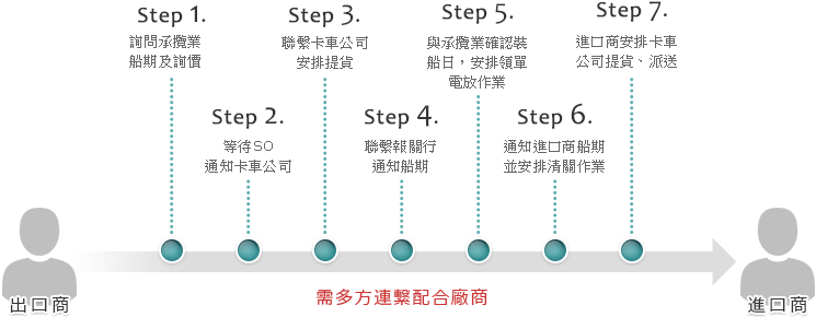 | 安排海運出貨您是否需要多方聯繫卡車公司、報關行、承攬業者並逐一進行比價? | 您曾經遇過承攬業者於國外端巧立名目高收費用,造成您的客戶抱怨進而自行指定運送業者嗎? |